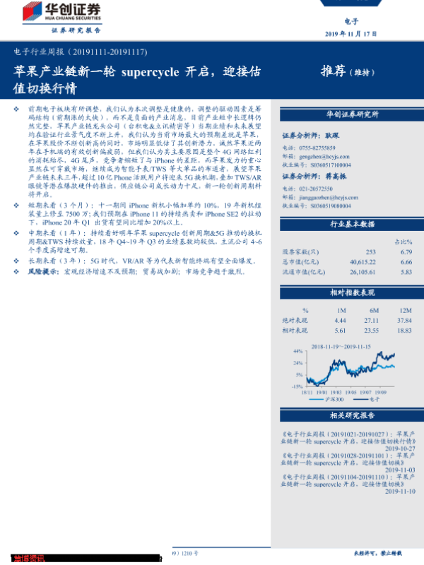 【华创证券】【20191117】20191117-华创证券-电子行业周报:苹果产业链新一轮supercycle开启,迎接估值切换行情-17页