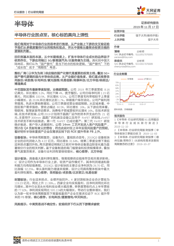 【天风证券】【20191117】20191117-天风证券-半导体行业研究周报:半导体行业拐点至,核心标的具向上弹性-17页