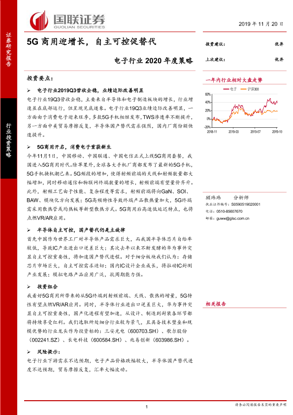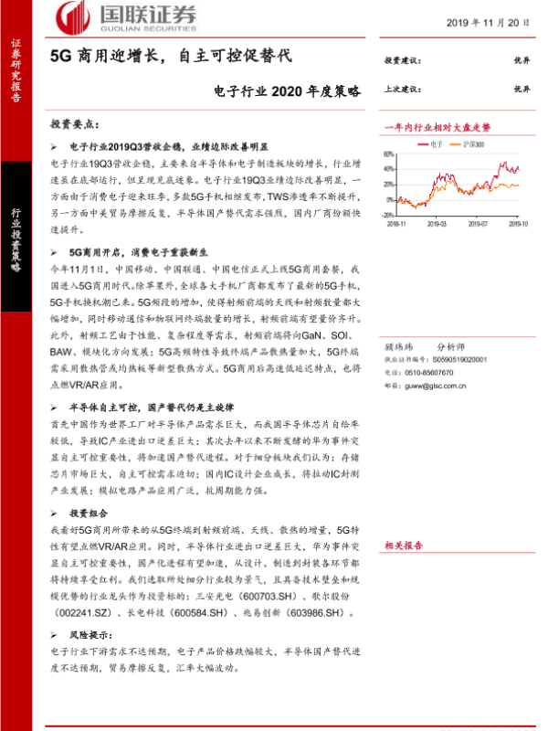 【国联证券】【20191120】电子行业2020年度策略:5G商用迎增长,自主可控促替代-26页