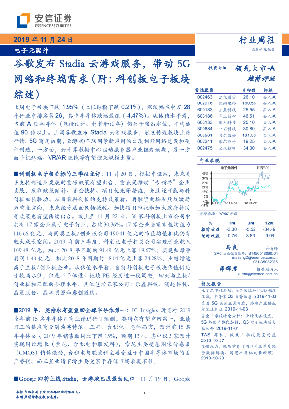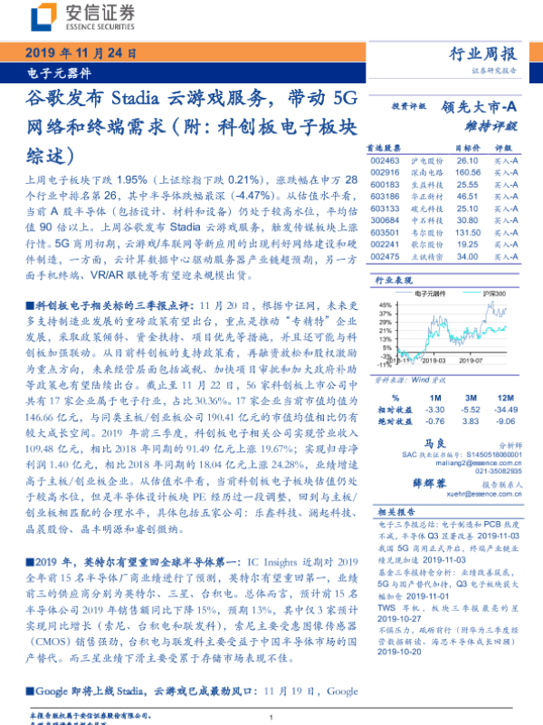 【安信证券】【20191124】谷歌发布Stadia云游戏服务,带动5G网络和终端需求(附:科创板电子板块综述)-19页