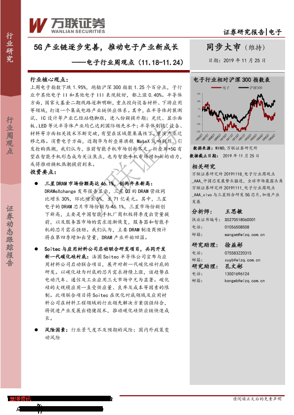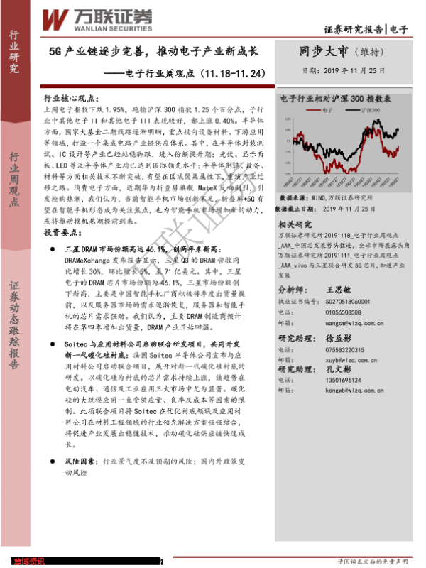 【万联证券】【20191125】20191125-万联证券-电子行业周观点:5G产业链逐步完善,推动电子产业新成长-11页