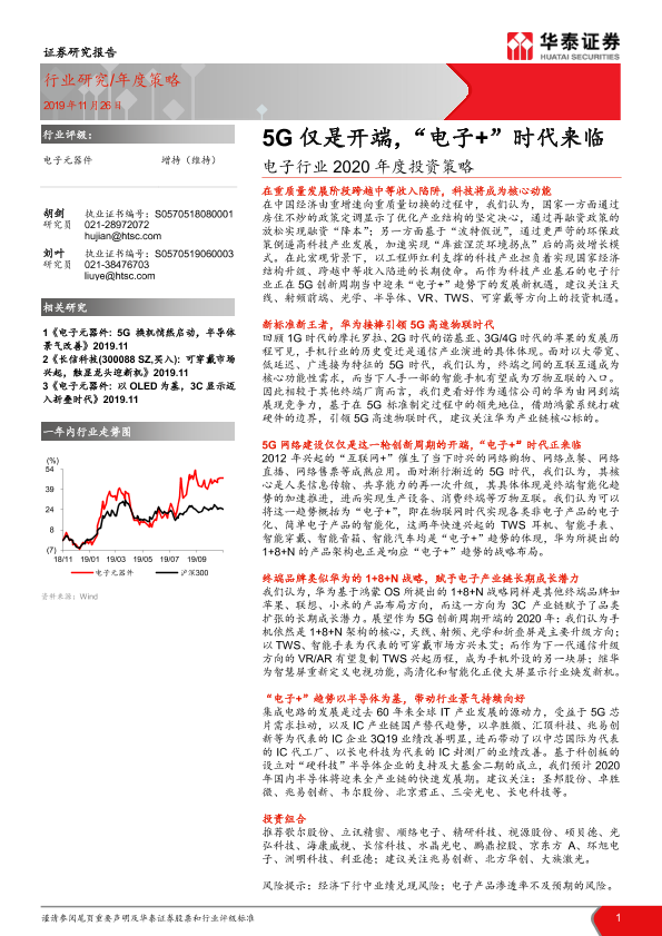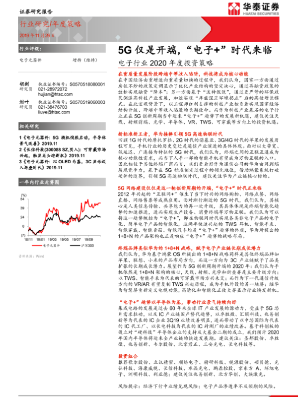 【华泰证券】【20191126】电子行业2020年度投资策略:5G仅是开端,“电子+”时代来临-42页