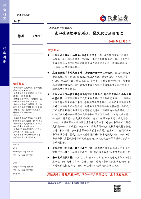 【兴业证券】【20191202】科创板电子行业周报:流动性调整难言到位,聚辰股份注册通过-10页