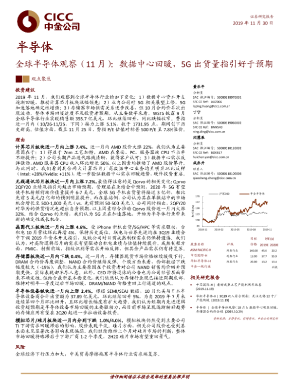 【中金公司】【20191130】全球半导体观察(11月):数据中心回暖,5G出货量指引好于预期-21页