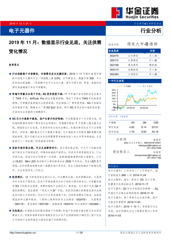 【华金证券】【20191201】2019年11月:数据显示行业见底,关注供需变化情况-28页