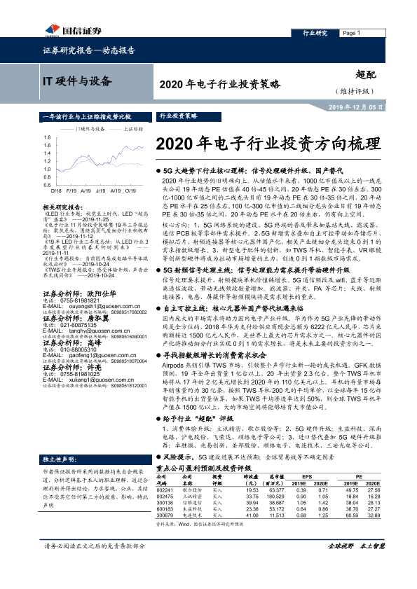 【国信证券】【20191205】2020年电子行业投资方向梳理-31页