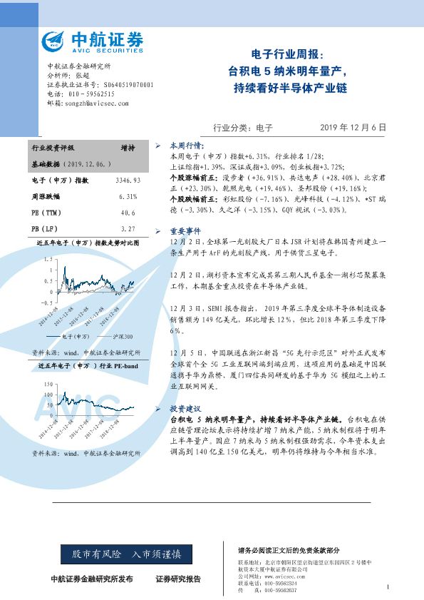 【中航证券】【20191206】电子行业周报:台积电5纳米明年量产,持续看好半导体产业链-3页