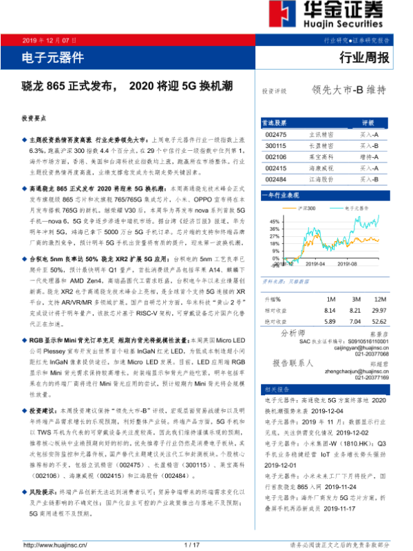 【华金证券】【20191207】20191207-华金证券-电子元器件行业周报:骁龙865正式发布,2020将迎5G换机潮-17页
