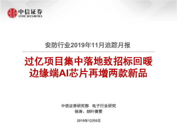 【中信证券】【20191206】安防行业2019年11月追踪月报:过亿项目集中落地致招标回暖边缘端AI芯片再增两款新品-19页