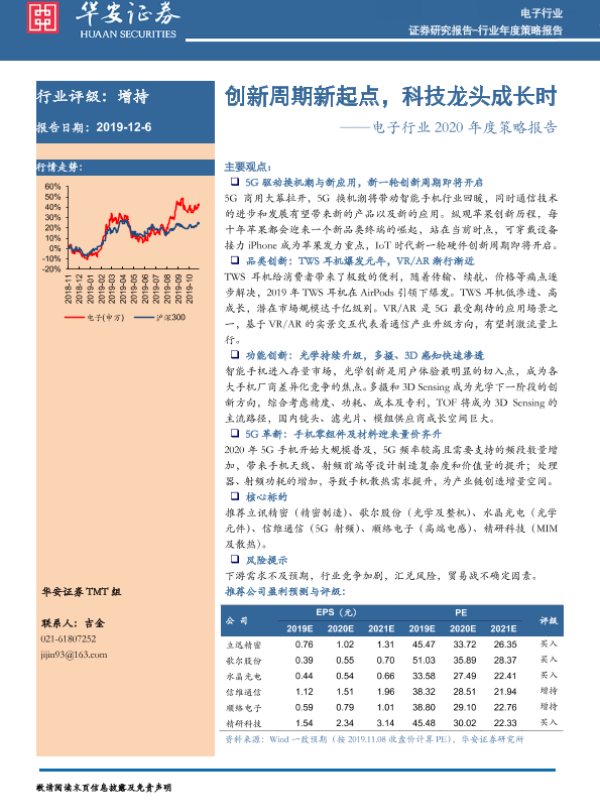 【华安证券】【20191206】创新周期新起点,科技龙头成长时——电子行业2020年度策略报告-29页