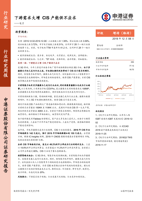 【申港证券】【20191208】电子行业研究周报:下游需求大增 CIS产能供不应求-12页