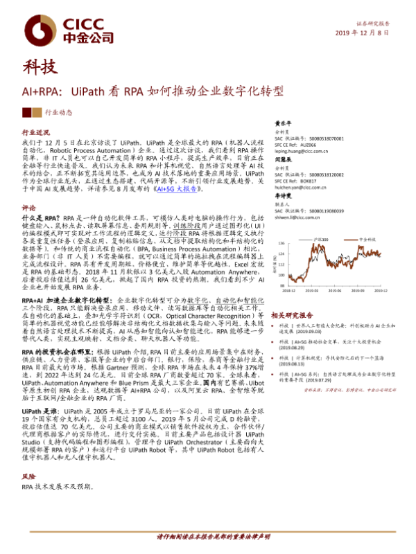 【中金公司】【20191208】AI+RPA:UiPath看RPA如何推动企业数字化转型-9页