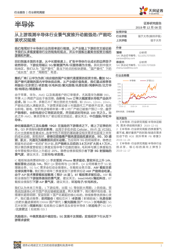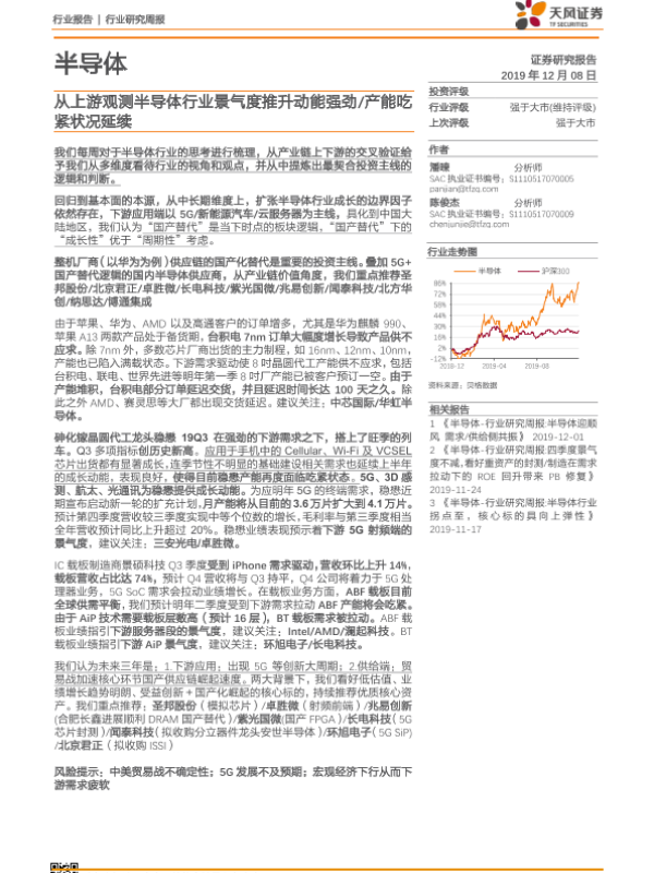 【天风证券】【20191208】半导体行业研究周报:从上游观测半导体行业景气度推升动能强劲产能吃紧状况延续-12页