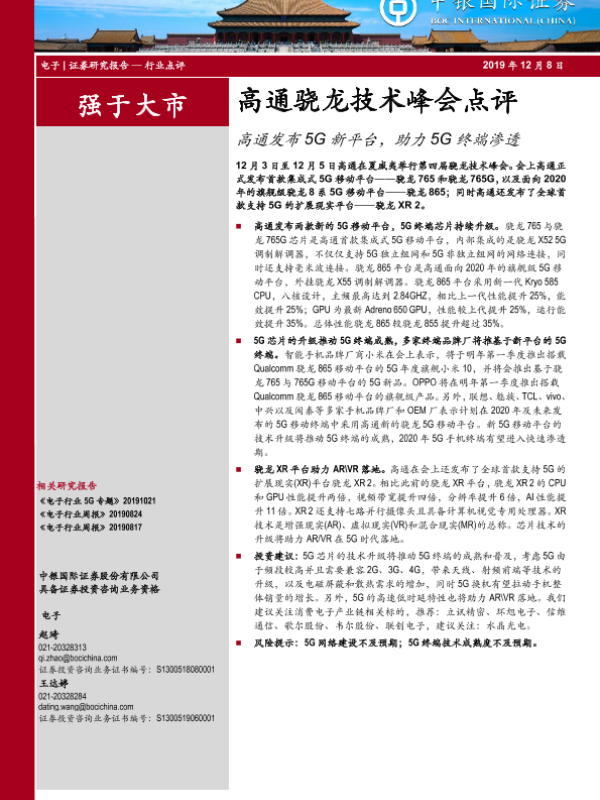 【中银证券】【20191208】电子行业高通骁龙技术峰会点评:高通发布5G新平台,助力5G终端渗透-4页