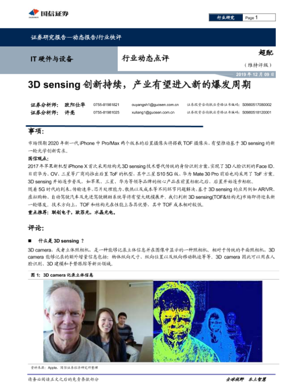 【国信证券】【20191209】IT硬件与设备行业动态点评:3D sensing创新持续,产业有望进入新的爆发周期-8页