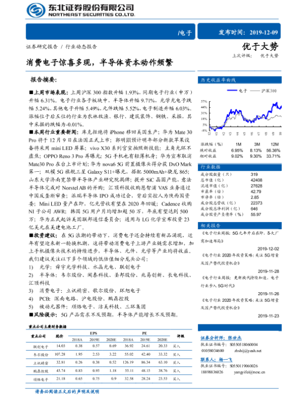 【东北证券】【20191209】消费电子惊喜多现,半导体资本动作频繁-10页