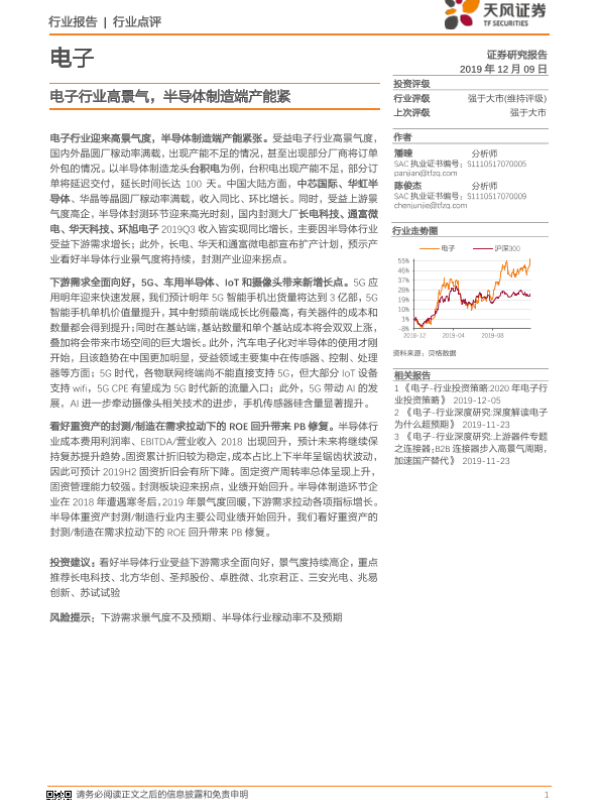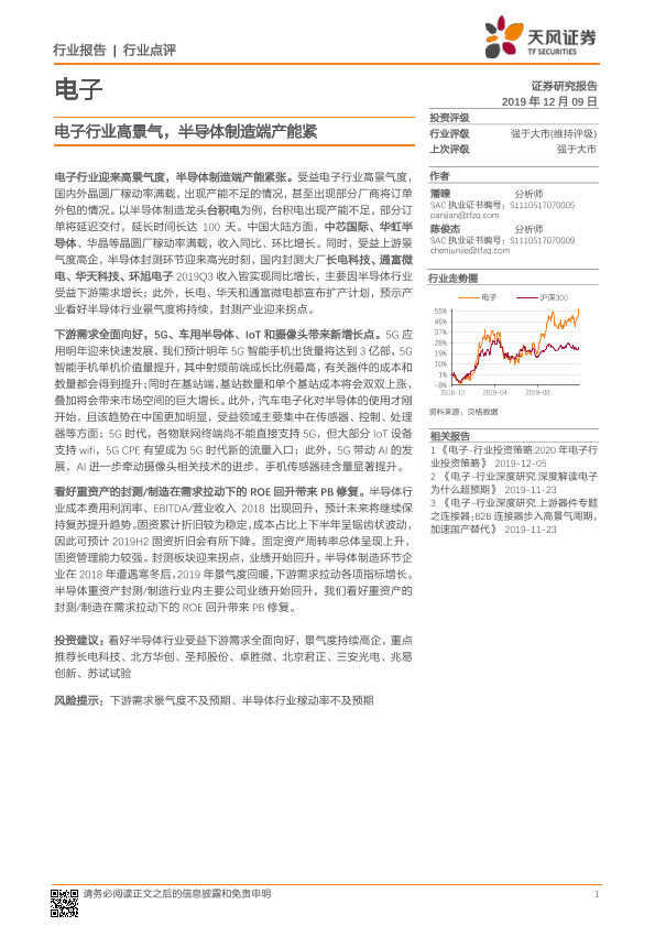 【天风证券】【20191209】电子行业点评:电子行业高景气,半导体制造端产能紧-12页