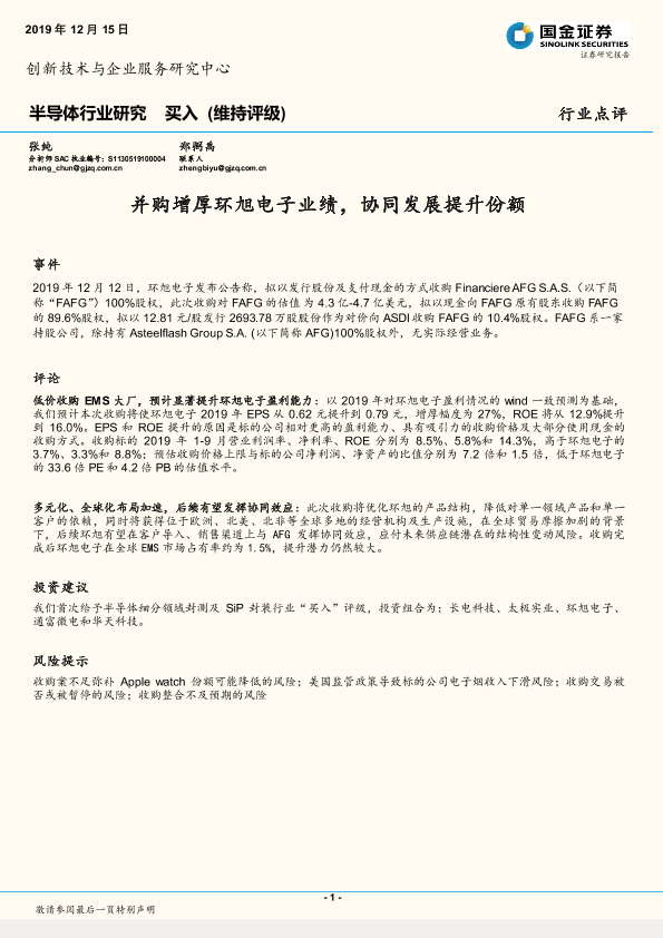 【国金证券】【20191215】20191215-国金证券-半导体行业研究:并购增厚环旭电子业绩,协同发展提升份额-8页