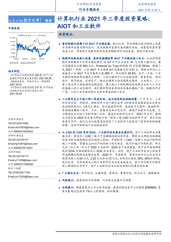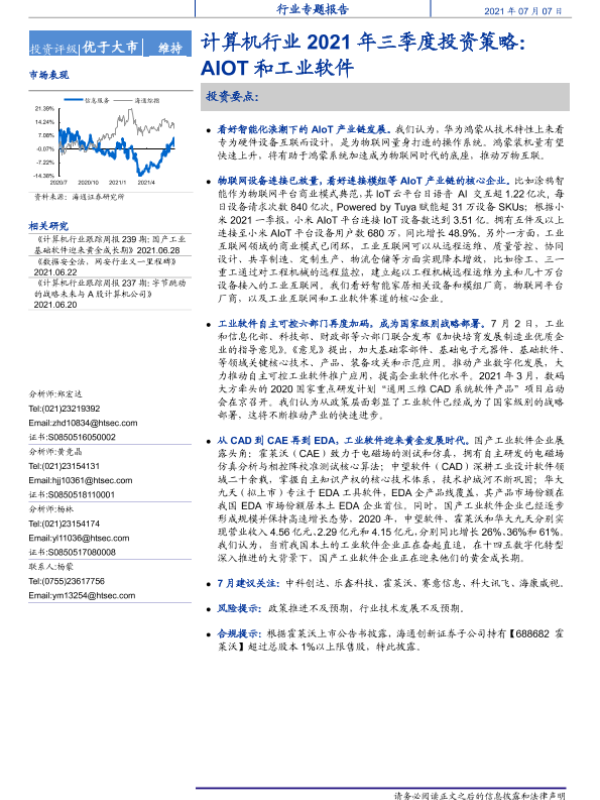 【海通证券】【20210707】计算机行业2021年三季度投资策略:AIOT和工业软件-12页