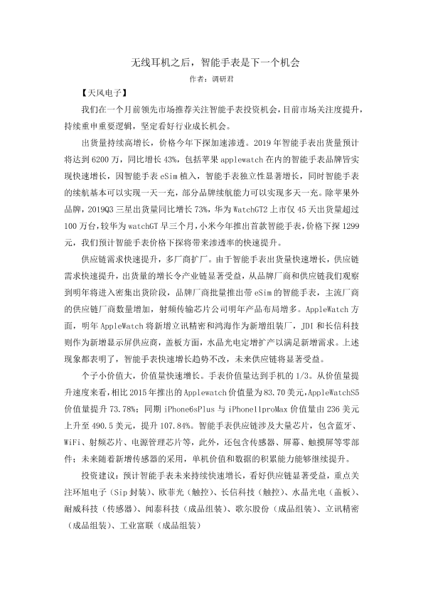 【天风证券】【20191218】无线耳机之后,智能手表是下一个机会-1页