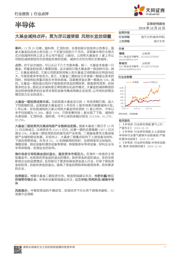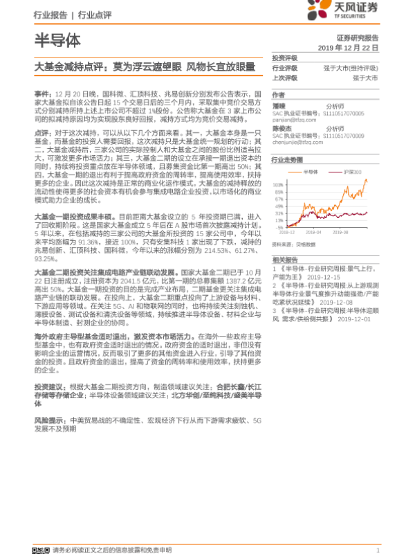 【天风证券】【20191222】半导体:大基金减持点评:莫为浮云遮望眼 风物长宜放眼量-8页