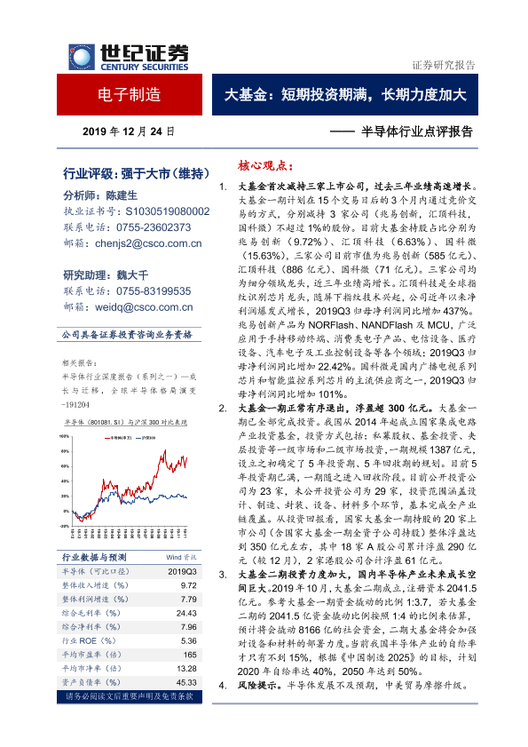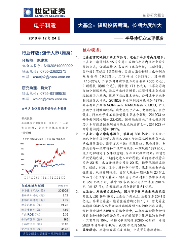 【世纪证券】【20191224】20191224-世纪证券-半导体行业点评报告:大基金:短期投资期满,长期力度加大-9页