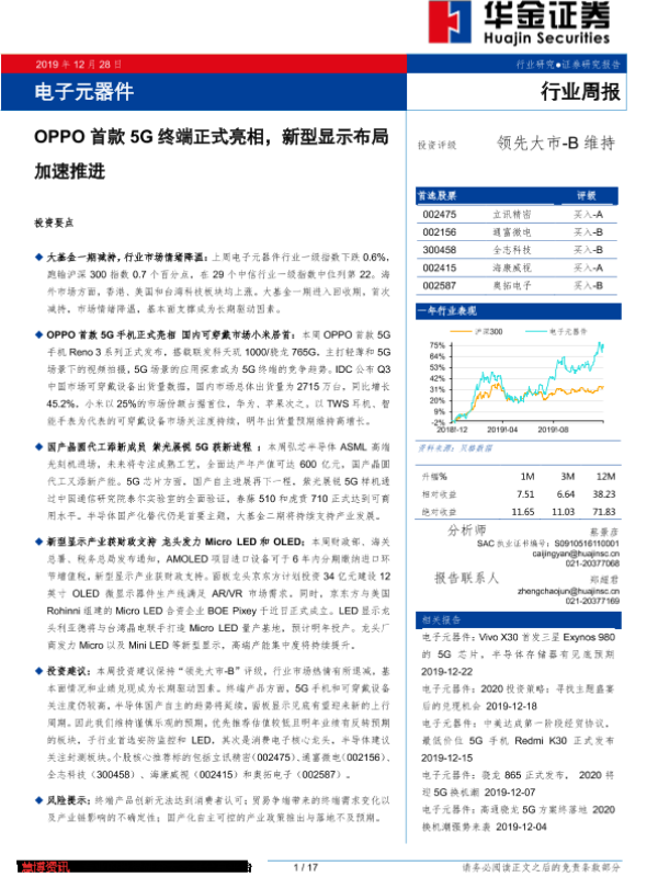 【华金证券】【20191228】电子元器件行业周报:OPPO首款5G终端正式亮相,新型显示布局加速推进-17页