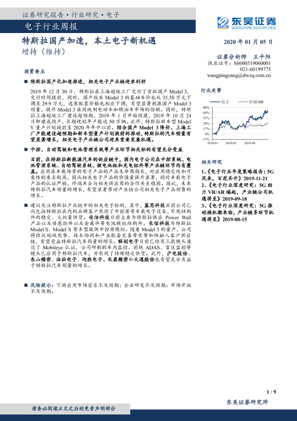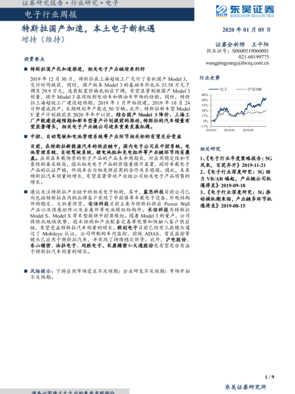 【东吴证券】【20200105】电子行业周报:特斯拉国产加速,本土电子新机遇-9页