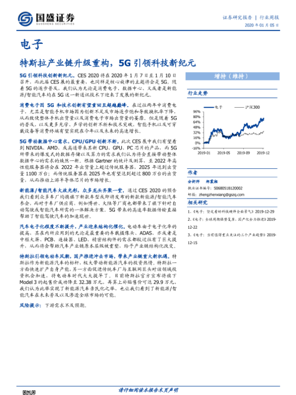 【国盛证券】【20200105】电子行业周报:特斯拉产业链升级重构,5G引领科技新纪元-14页