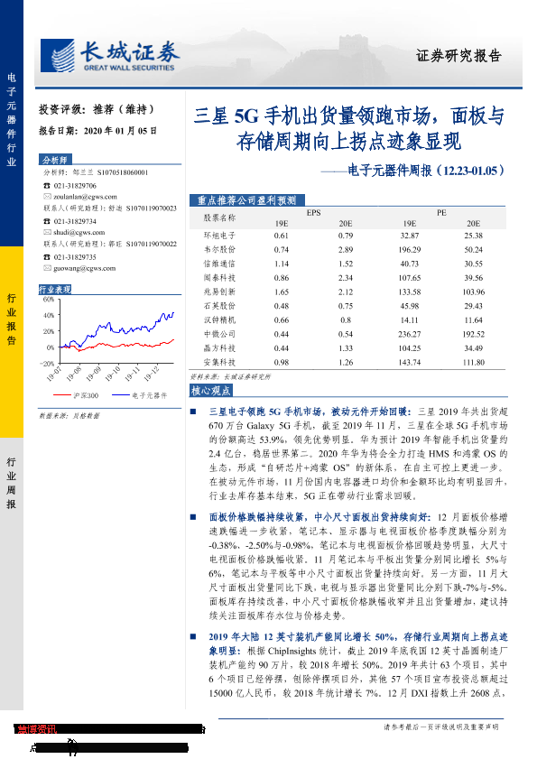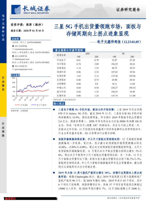 【长城证券】【20200105】20200105-长城证券-电子元器件周报:三星5G手机出货量领跑市场,面板与存储周期向上拐点迹象显现-20页