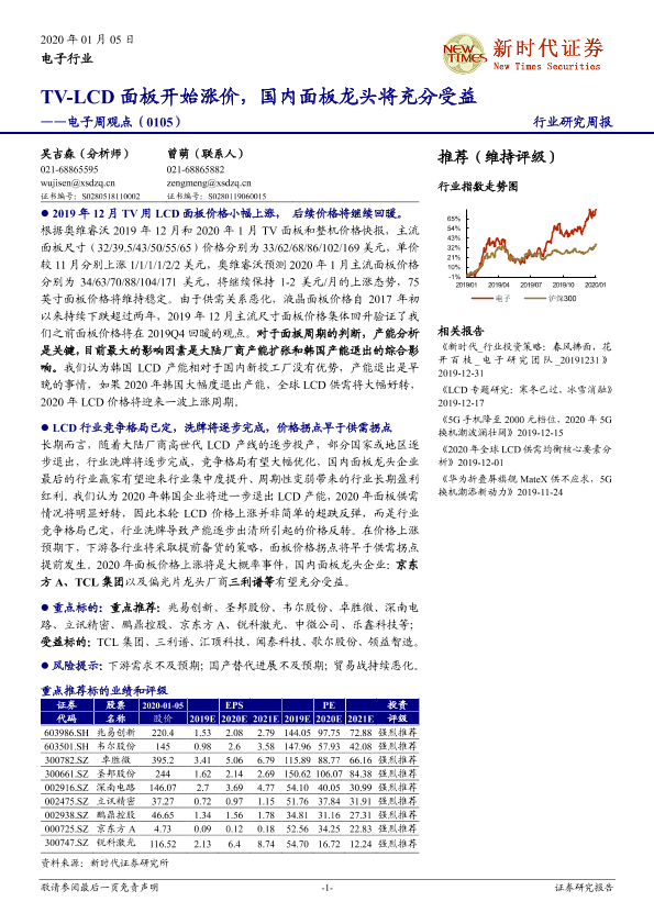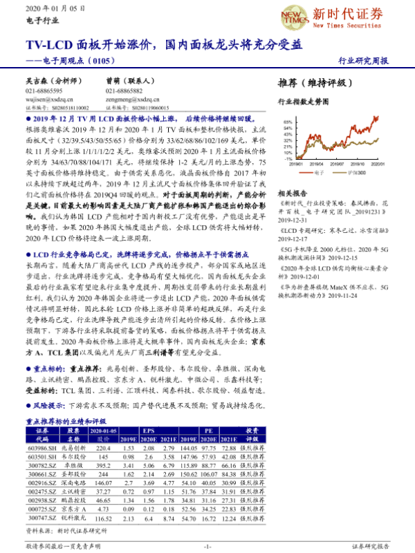 【新时代证券】【20200105】电子周观点:TV-LCD面板开始涨价,国内面板龙头将充分受益-16页