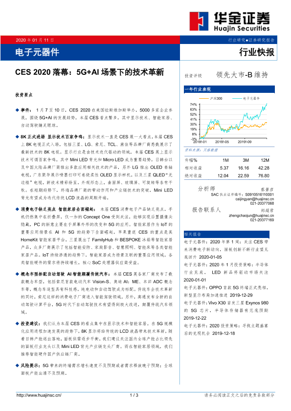 【华金证券】【20200111】CES 2020落幕:5G+AI场景下的技术革新-3页