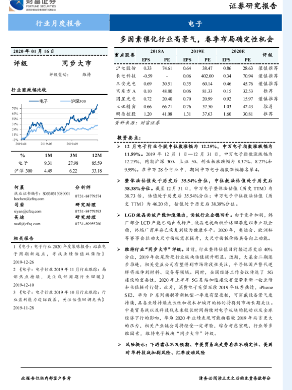 【财信证券】【20200116】电子行业月度报告:多因素催化行业高景气,春季布局确定性机会-15页