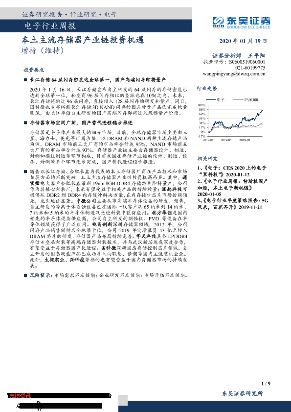 【东吴证券】【20200119】电子行业周报:本土主流存储器产业链投资机遇-9页
