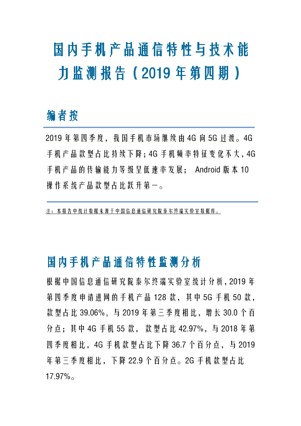 【中国信通院】【20200121】国内手机产品通信特性与技术能力监测报告(2019年第四期)-6页