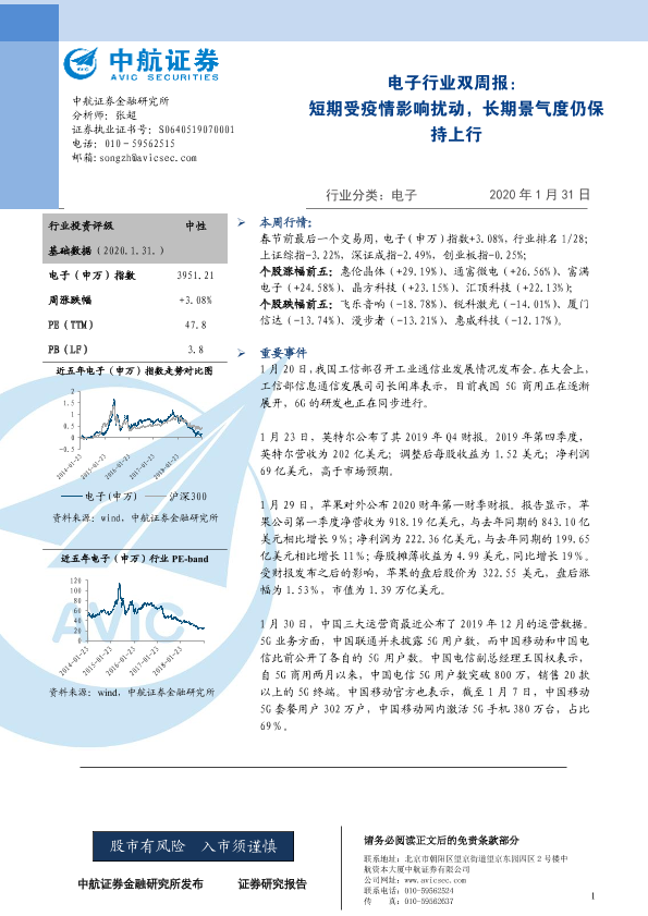 【中航证券】【20200131】电子行业双周报:短期受疫情影响扰动,长期景气度仍保持上行-3页