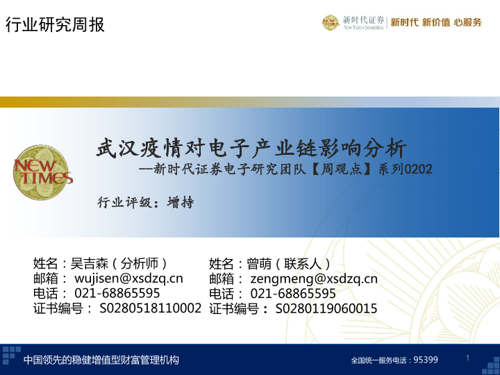 【新时代证券】【20200202】武汉疫情对电子产业链影响分析-29页