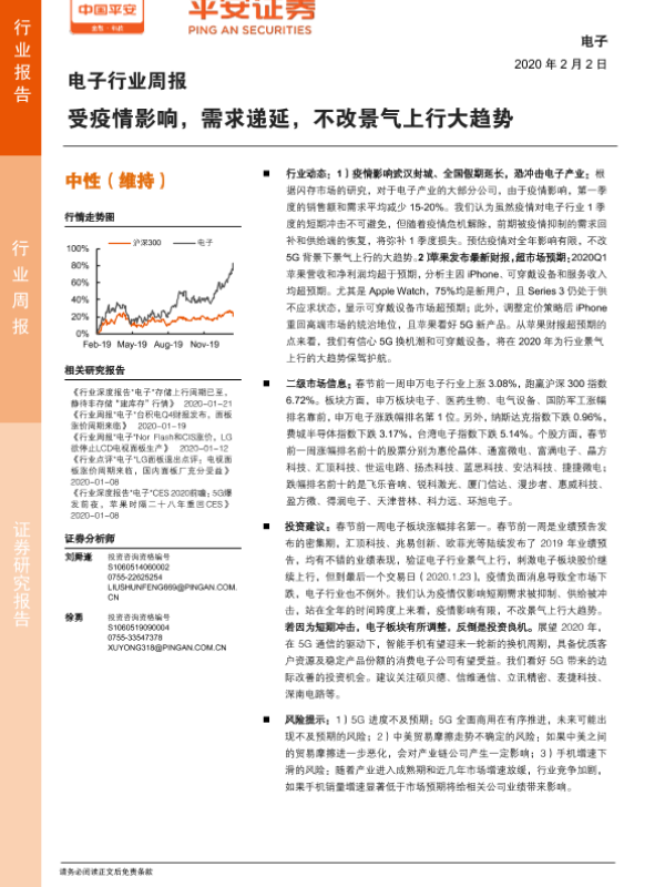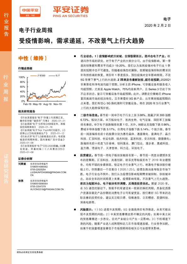 【平安证券】【20200202】电子行业周报:受疫情影响,需求递延,不改景气上行大趋势-5页