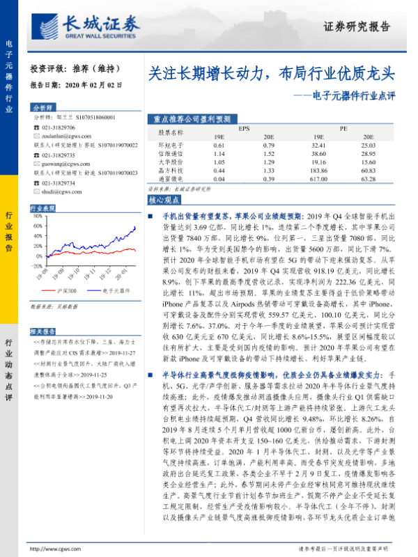 【长城证券】【20200202】电子元器件行业点评:关注长期增长动力,布局行业优质龙头-3页