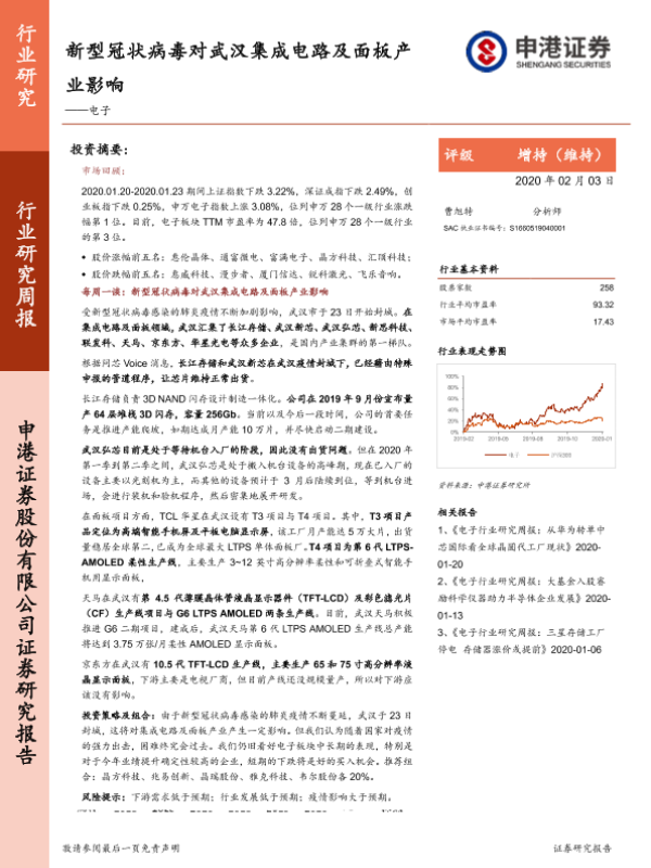 【申港证券】【20200203】20200203-申港证券-电子行业研究周报:新型冠状病毒对武汉集成电路及面板产业影响-11页