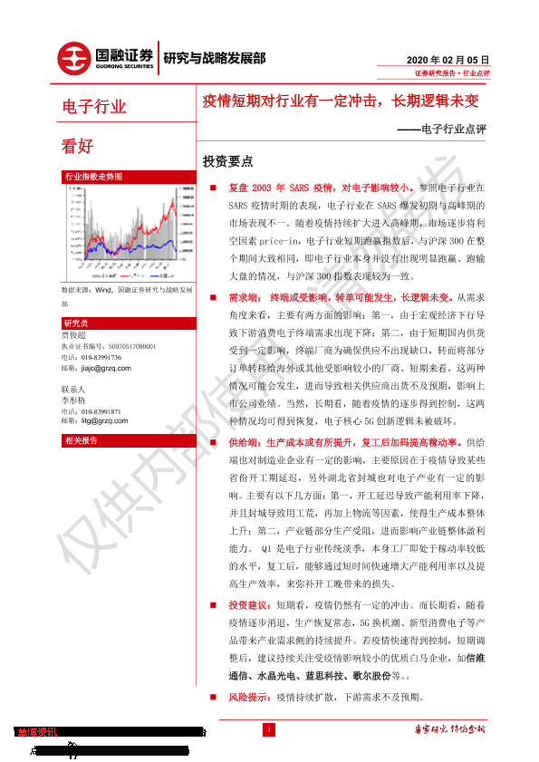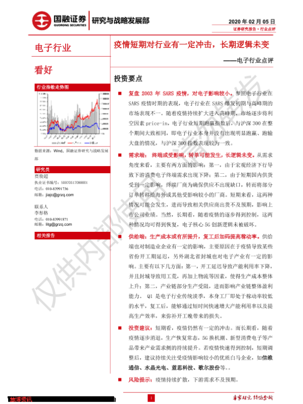 【国融证券】【20200205】电子行业点评:疫情短期对行业有一定冲击,长期逻辑未变-7页