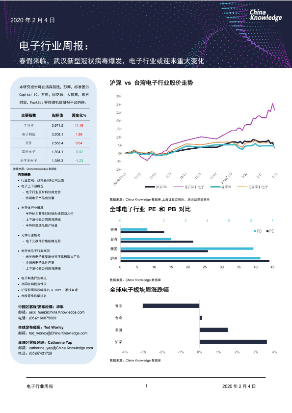 【China Knowledge】【20200204】20200204-China Knowledge-电子行业周报:春假来临,武汉新型冠状病毒爆发,电子行业或迎来重大变化-31页
