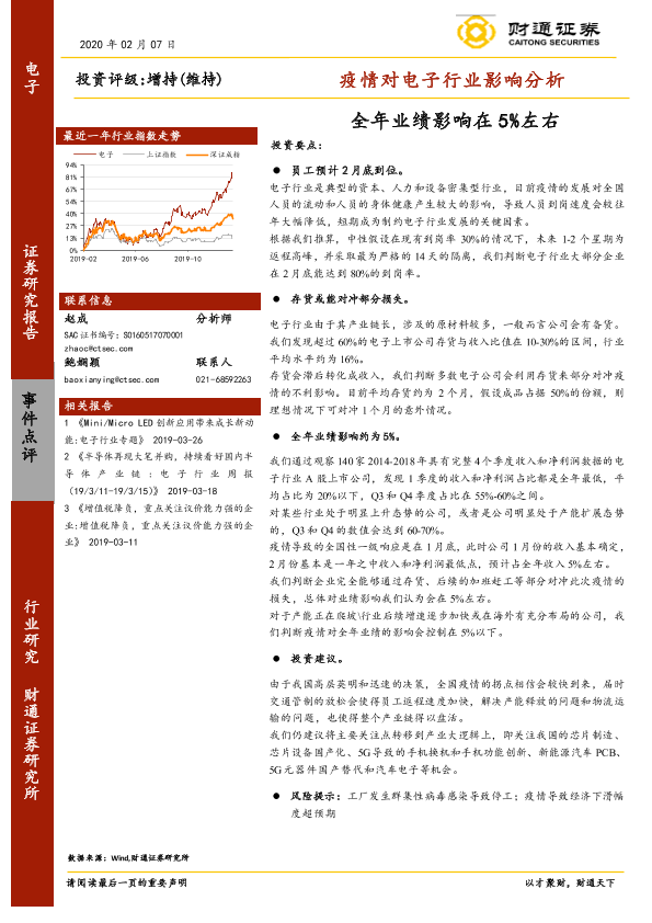 【财通证券】【20200207】疫情对电子行业影响分析:全年业绩影响在5%左右-5页