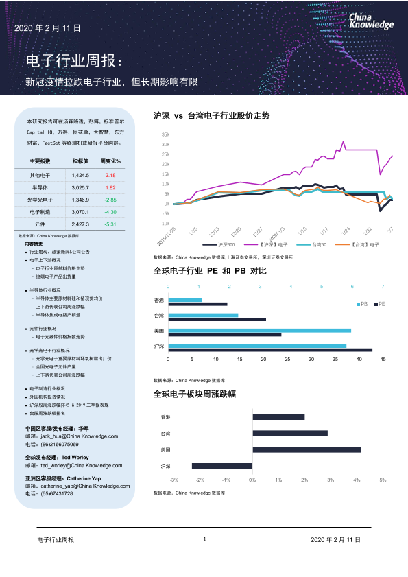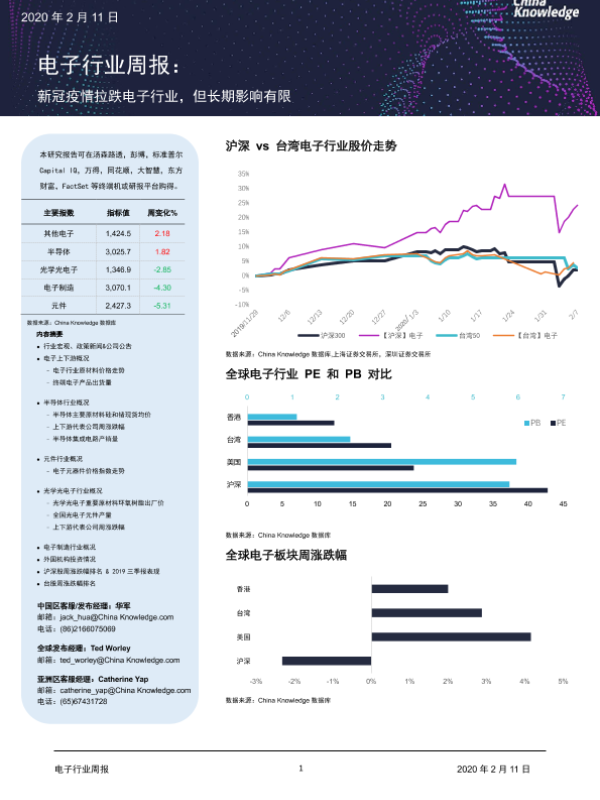 【China Knowledge】【20200211】20200211-China Knowledge-电子行业周报:新冠疫情拉跌电子行业,但长期影响有限-30页
