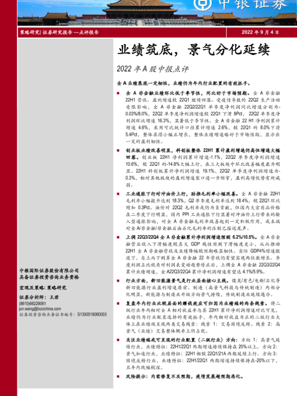 【中银证券】【20220901】2022年A股中报点评:业绩筑底,景气分化延续-23页