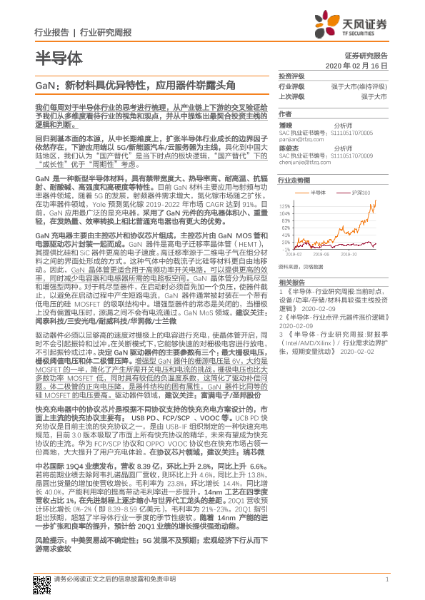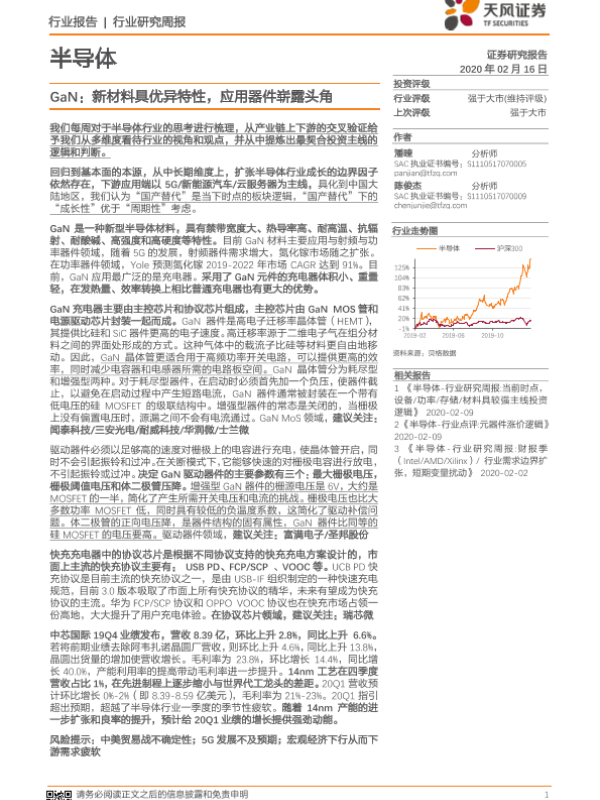 【天风证券】【20200216】20200216-天风证券-半导体行业研究周报:GaN:新材料具优异特性,应用器件崭露头角-16页