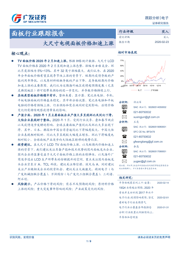 【广发证券】【20200223】20200223-广发证券-面板行业跟踪报告:大尺寸电视面板价格加速上涨-9页