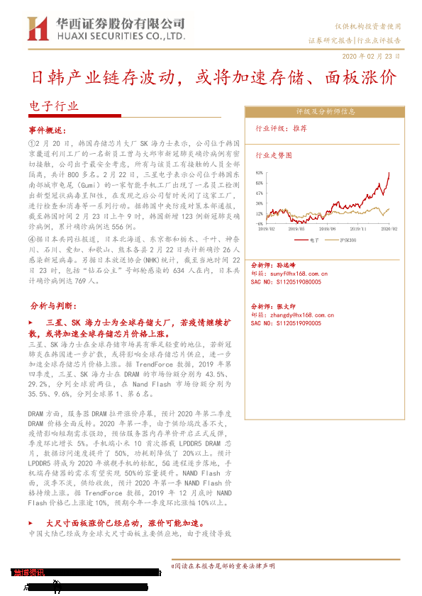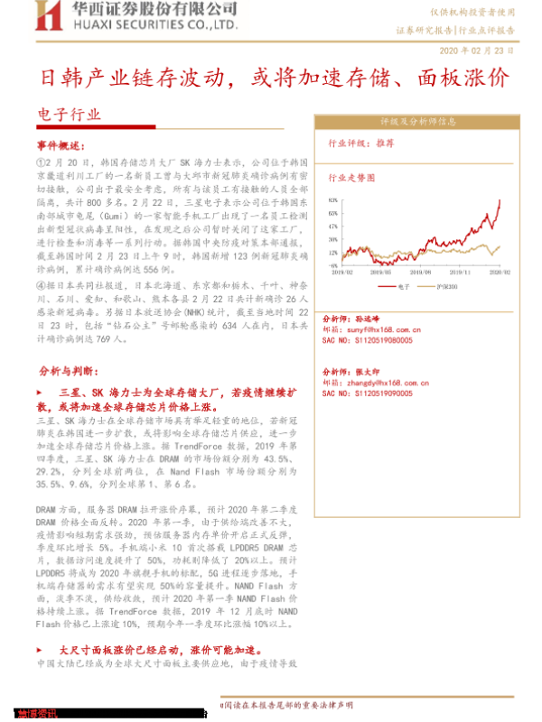 【华西证券】【20200223】电子行业:日韩产业链存波动,或将加速存储、面板涨价-4页
