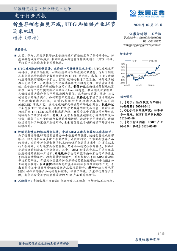 【东吴证券】【20200223】电子行业周报:折叠屏概念热度不减,UTG和铰链产业环节迎来机遇-13页