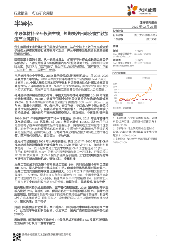 【天风证券】【20200223】20200223-天风证券-半导体行业研究周报:半导体材料:全年投资主线,短期关注日韩疫情扩散加速产业链替代-24页